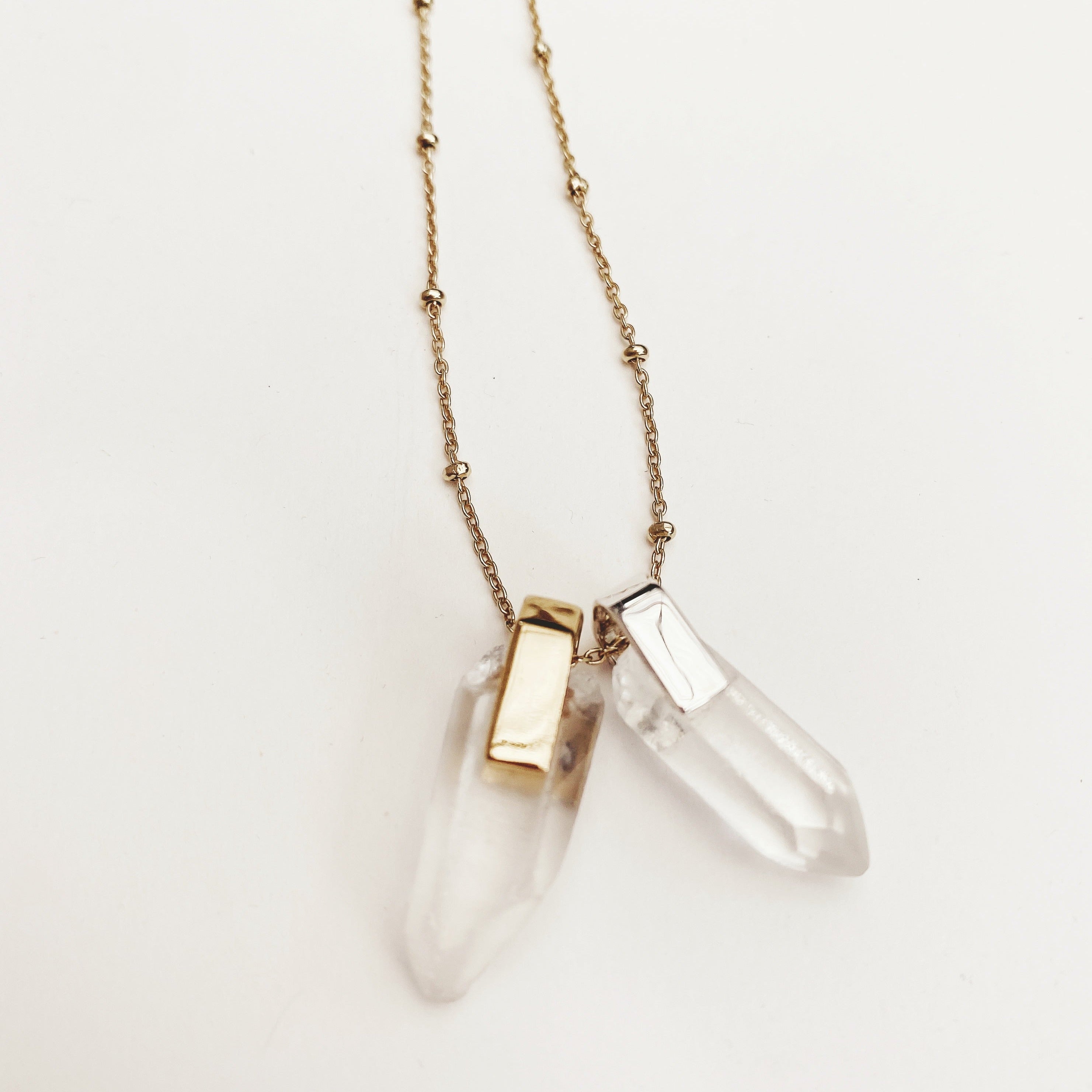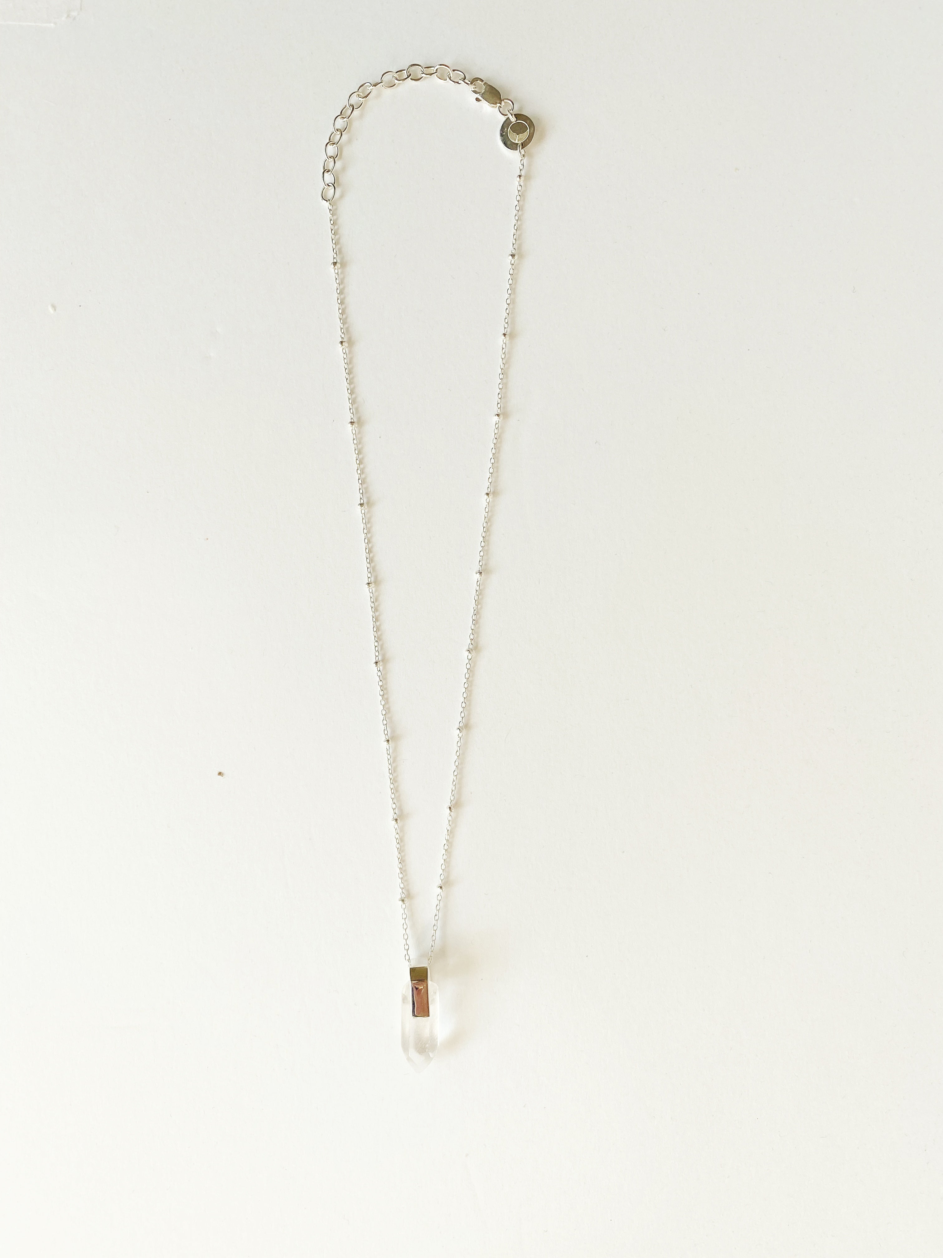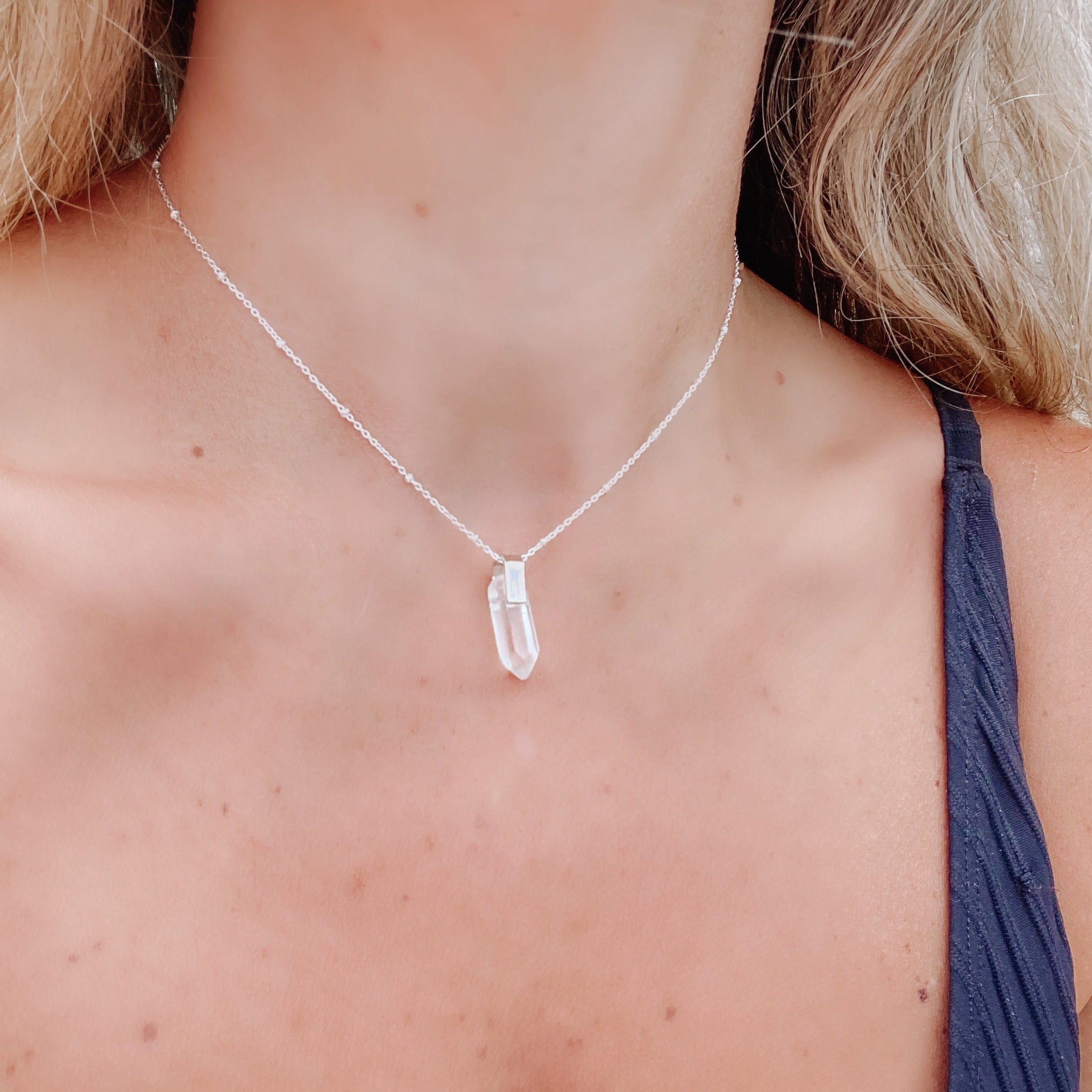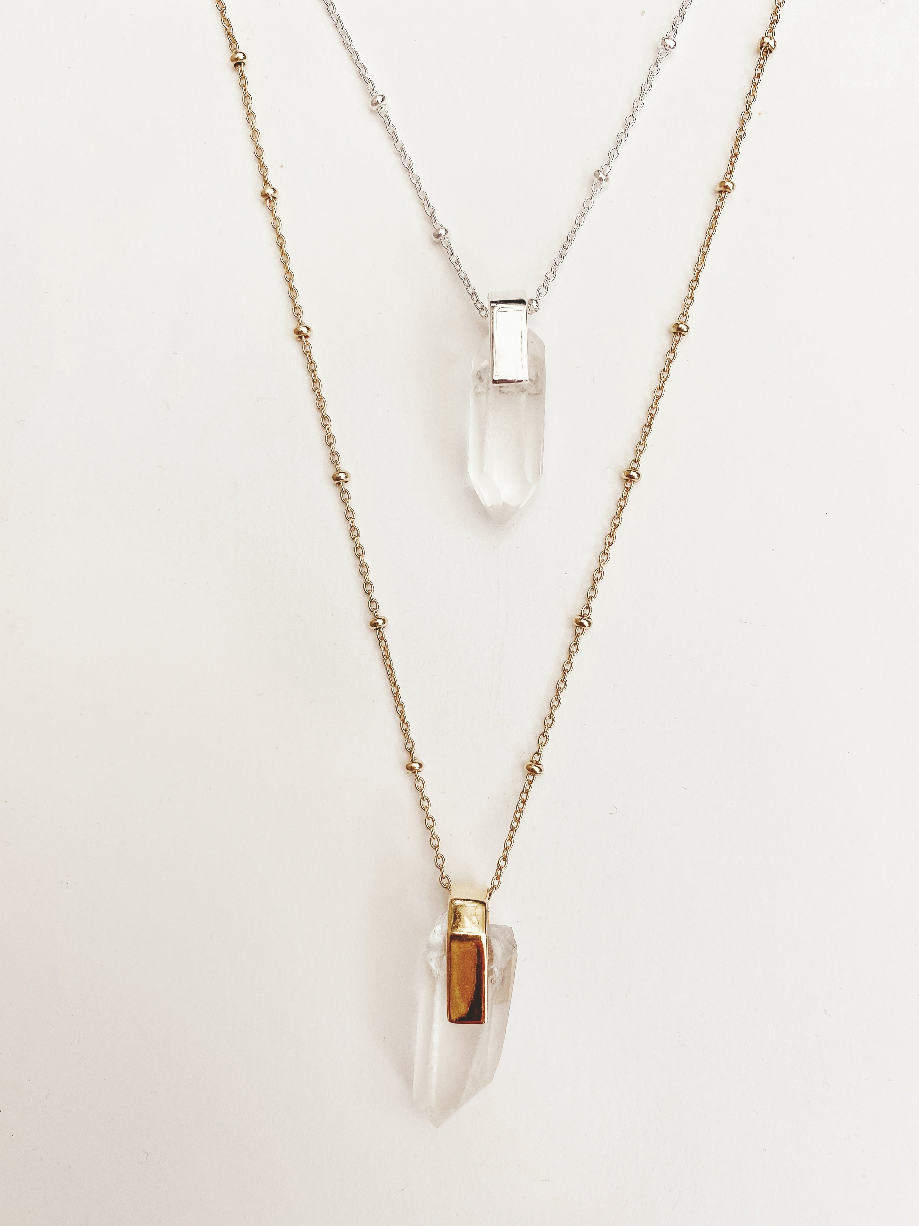 Our best seller Indie_quartz crystal in silver features a raw cut A grade clear quartz point paired perfectly with the Indie_stud chain. This is the perfect statement necklace it can be worn on its own or layered with our Indie chokers or chains.
