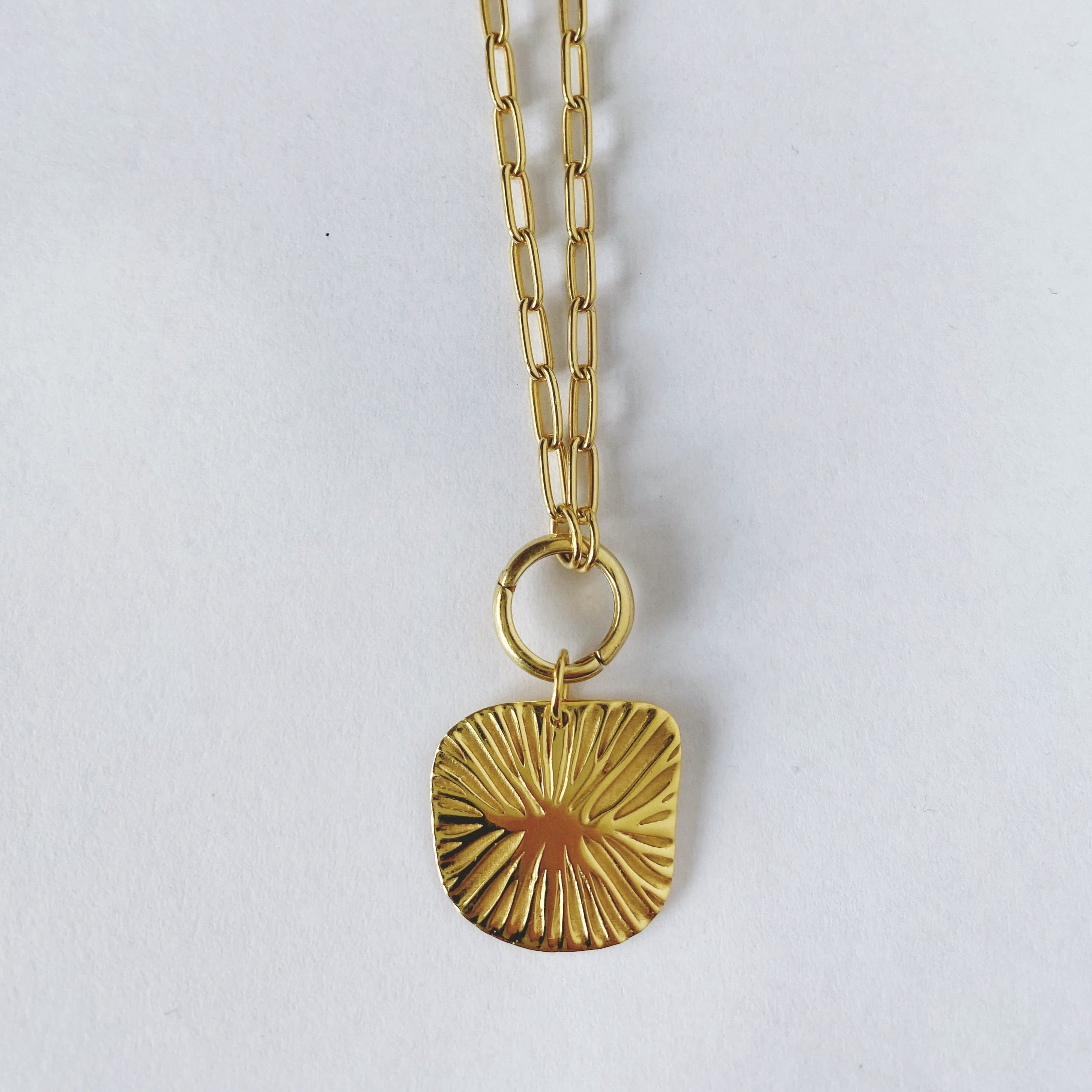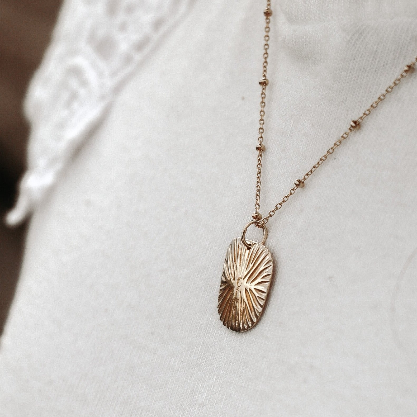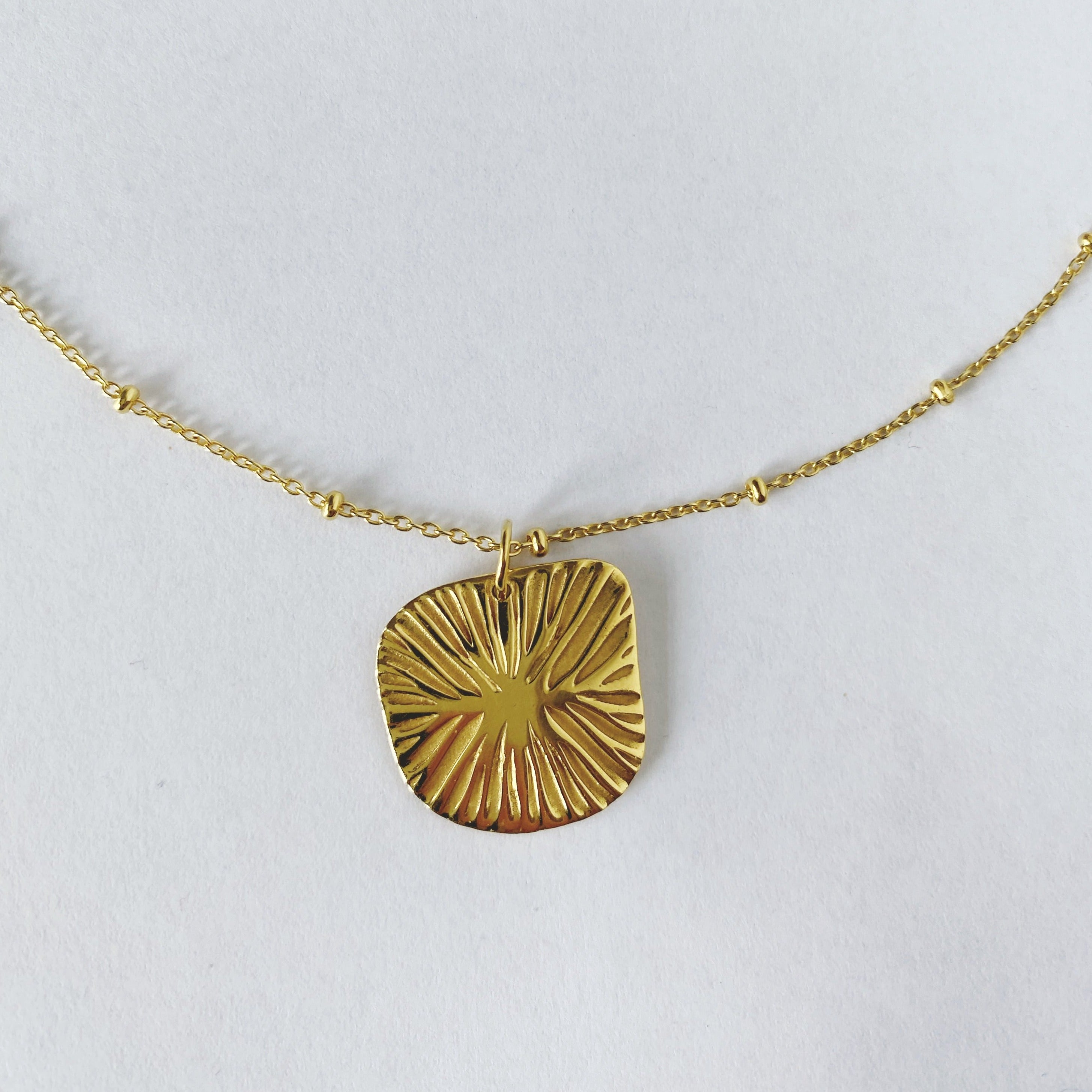 The fine lines of the Indie_coral pendant resemble the architecture of the sea. The Indie_coral imperfectly shaped pendant represents the texture of the ocean's surface. This can be worn layered with the Indie_link chain and our collared necklace for a statement look.