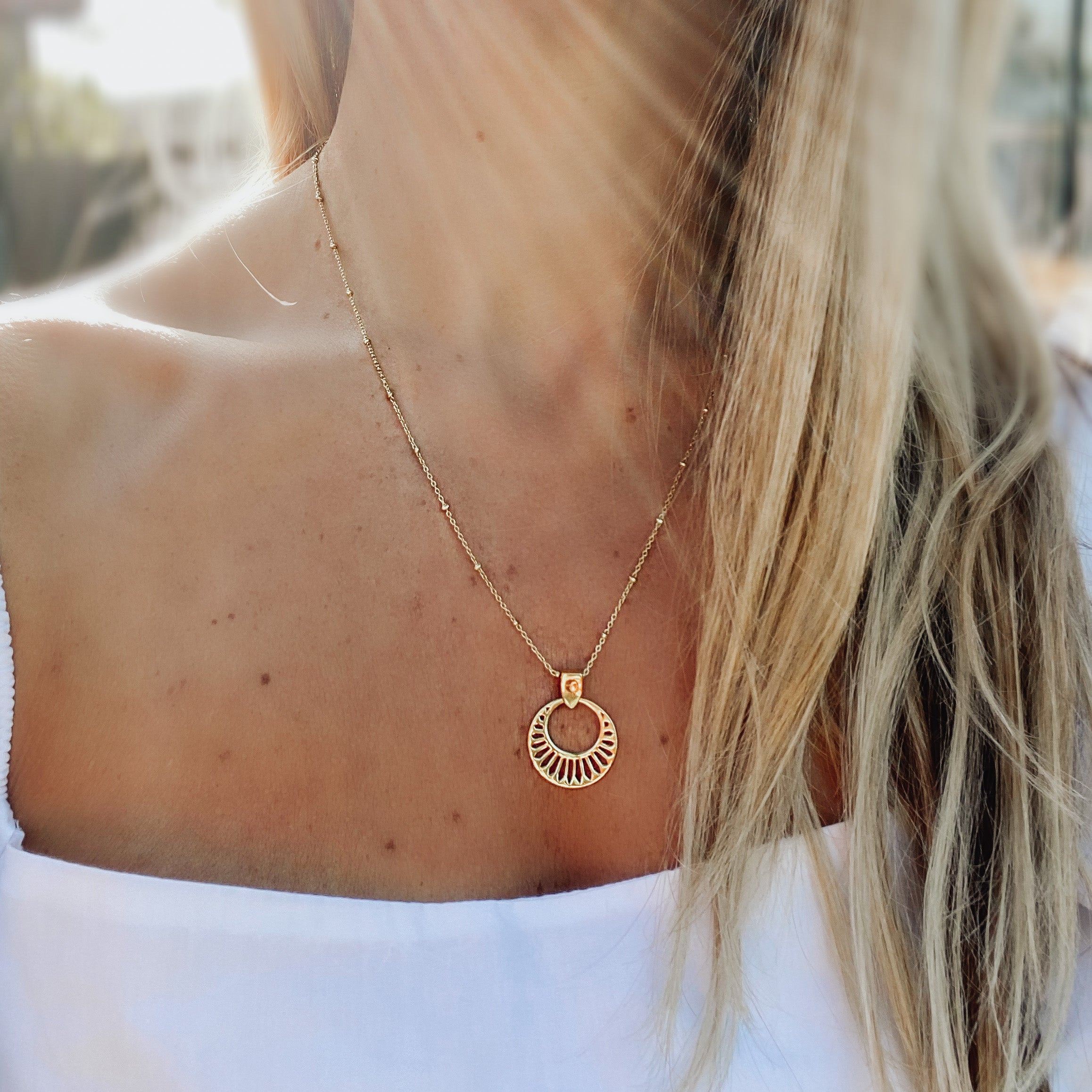 Wild and barefoot, combing the sea in search of the perfect treasure. This delicately crafted 14ct gold pendant, inspired by the intricate patterns of the nautilus shell, the perfect keepsake to remind its wearer memories of the sea-shore. Indie_shell pendant is symbolic of the sea and the search for nature's beauty. This can be worn layered with the Indie_link chain and our collared necklaces for a statement look.